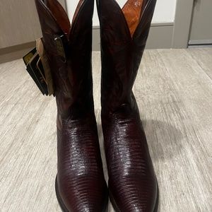 Step out in style with these Dan Post men's boots. Crafted from high-quality leather, these boots are perfect for any Western enthusiast. With a genuine lizard design and a beautiful shade of brown, these boots are sure to turn heads. Featuring a comfortable size 9.5, these boots are perfect for any man who wants to add a touch of Western flair to their wardrobe. The DP: 3051 style adds a classic touch that will never go out of style. Perfect for any occasion, these boots are a must-have for any fashion-conscious man.