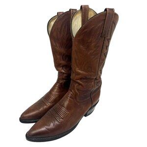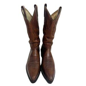 Dan Post Mens Brown Leather Western Cowboy Boots US 7D Pull On Style 111J Unisex. Made in the USA. Great Pre-Owned Condition Gently Worn. Ships from smoke free home.