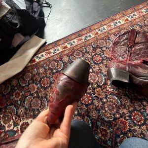 Dan Post Red Hearts Embellished Cowboy Boots, size 9, light wear to sole, good used condition