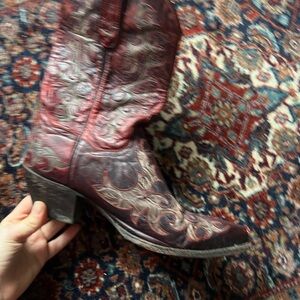 Dan Post Red Hearts Embellished Cowboy Boots, size 9
