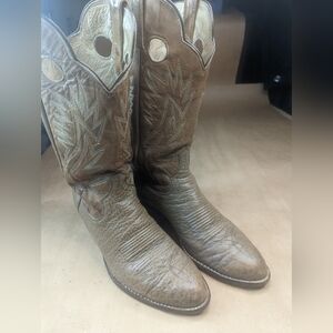 Dan Post boots men's size 9D brown Shrunken Bull Shoulder leather vamp and pulls