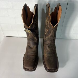 Experience the timeless appeal of Dan Post Cowboy Boots, crafted in a rich brown leather with a weathered finish. These boots feature a traditional square toe and a medium-height heel, complemented by subtle western stitching on the shaft. Built for durability and style, they are perfect for any western occasion.