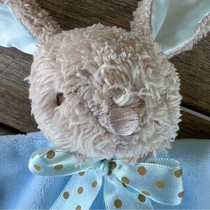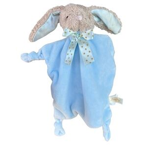 DanDee Collector’s Choice Plush Bunny Lovie Soother Security Blanket. Blue with a Brown bunny. Satin ears, embroidered eyes and nose, knotted corners. The head rattles. So cute!