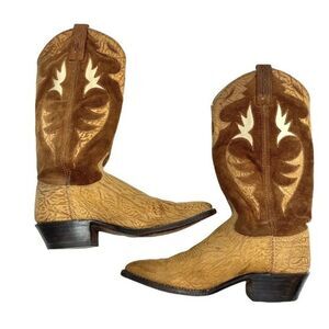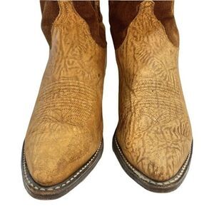 Dan Post Tan Cream Leather Suede Pull On Pointed Toe Western Cowboy Boots P2131