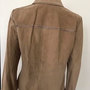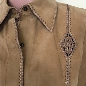 Brand new with tag Dana BUCHMAN 100% sued shirt or jacket with an elegant embroidery around the neck, front, bottom of sleeves and back.close with snap on buttons.