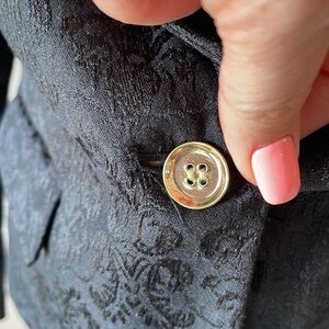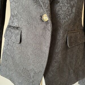 Dana BUCHMAN damask / paisley pattern blazer / jacket black sheen 1 button sz 4