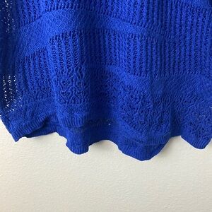 Dana Bachman Patchwork Sweater Surf Blue Open Knit XL Nautical Coastal