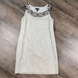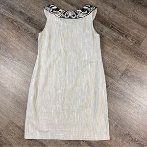 Dana Bachman Sheath Dress Women 10 Beige Brown Embroidered Midi Linen Blend Zip
