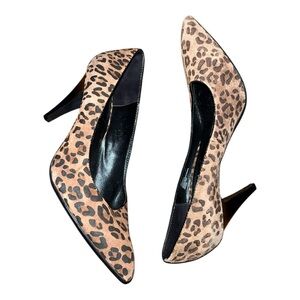 Dana Bachman leopard print heels size 8 1/2 leather upper animal print stilettos
