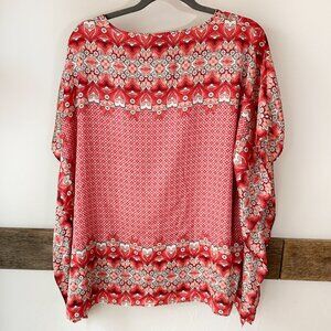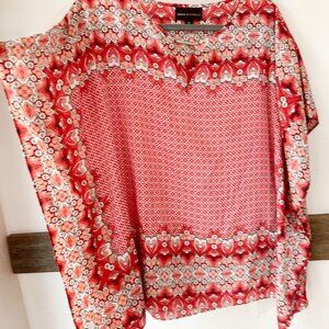 Dana Buchanan Red White Handkerchief Top Blouse M Geometric