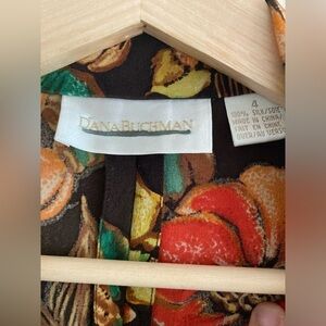 Dana Buchman 100% silk shirt fall floral button down 3/4 sleeve