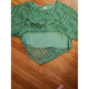 The Dana Buchman Asymmetrical Poncho scoop-neck blouse in XXL is a stylish and comfortable top perfect for casual occasions. Made of lightweight polyester material, this green geometric pattern blouse features a scoop neck and kimono sleeves for a modern look. With a pullover closure and easy-care instructions, this blouse is suitable for spring and summer seasons. The regular fit and colorful theme make it a versatile and eye-catching addition to any woman's wardrobe. Perfect for those looking for a trendy yet effortless piece with a touch of geometric flair.