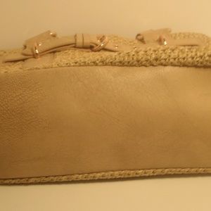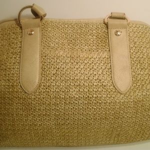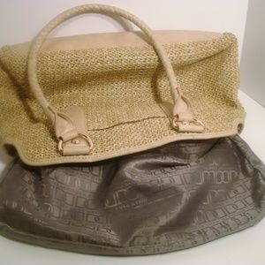 Dana Buchman Beige Straw and Faux Leather Handbag