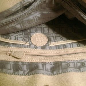 I have for your consideration a Dana Buchman handbag, excellent used condition. 17" x 12", has five inside pockets, with one outside pocket; all zippers work correctly. Both straps are working correctly in excellent condition.