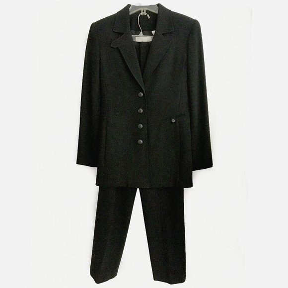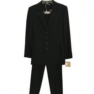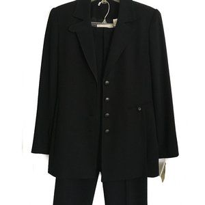 Dana Buchman Black 100% Wool Crepe Suit Jacket Coordinating Pants NWT