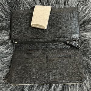 Beautiful brand new, Dana Buchman, wallet and pouch. This is a great wallet that has plenty of storage space. The interior pouch fits nicely and can be used by itself. Lots of space for credit card bills and change. Strong snap that adjust when your wallet grows 😏