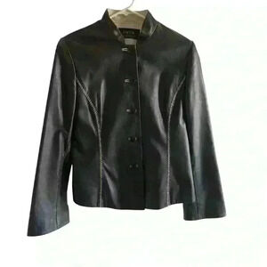 Dana Buchman Black Leather Jacket Size 10 Button Front Accent Stitching