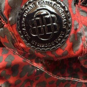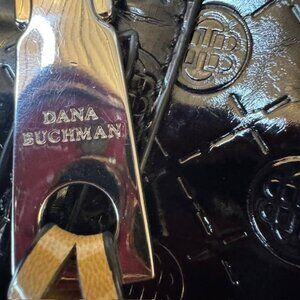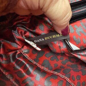 This sleek and professional Dana Buchman tote bag is crafted from luxurious black patent leather with an embossed design. Featuring a spacious interior and a convenient front zip pocket, it's an ideal accessory for the modern professional. The tan handles provide a sophisticated contrast, enhancing its overall elegance.