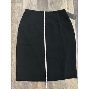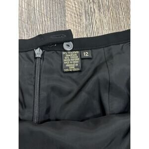 A classic black pencil skirt by Dana Buchman, perfect for formal or office wear. The skirt features a sleek design with a comfortable fit. It is a size 12.