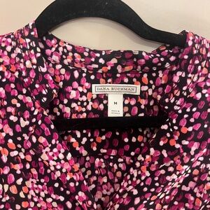 Dana Buchman Black Pink Polka Dot Button Front Career Blouse Women's Size Medium