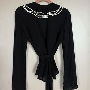 Dana Buchman Black Tuxedo Ruffle Wrap Long Sleeve 100% Silk Blouse SZ 6 Medium