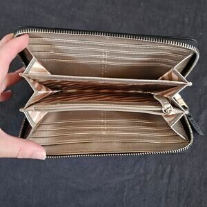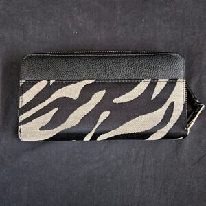 Dana Buchman Black and White Zipper Wallet Zebra Print Faux Leather