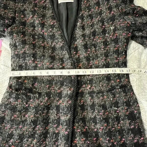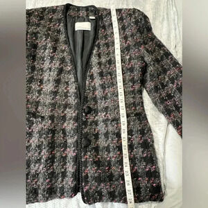 Dana Buchman Blazer Vintage wool tweed style black & gray long button size 6 by