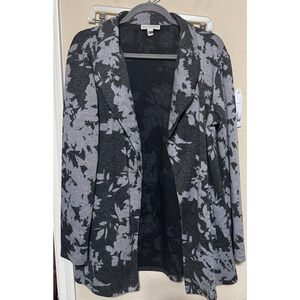 Dana Buchman Blazer Womens Sz L Gray Black Jacket Open Front Pockets Career