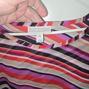 Dana Buchman Blouse Red Purple Black Tan Sheer Top Wrap Layered Size XL