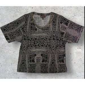 Dana Buchman Blouse Top Size Large Short Sleeve Stretch Embellished Neck