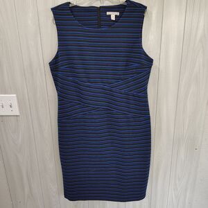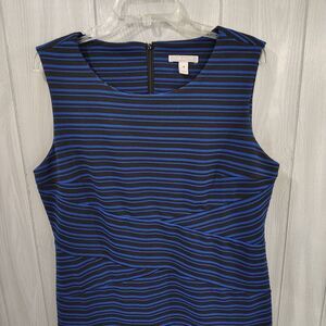 Dana Buchman Blue And Black Striped Sleeveless Sheath Dress Size 16