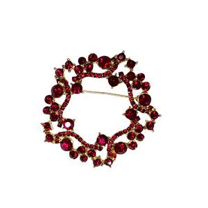 Dana Buchman Brooch Pin Festive Red Crystal Gold Tone Jewelry