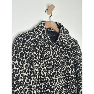 Dana Buchman Cheetah Zip Up Wool Blend Blazer Jacket Size 2 Petite Black Cream