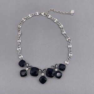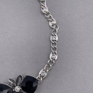 Black Crystal Rhinestone Bib Necklace Silver Tone Adjustable Lobster Closure