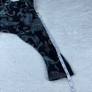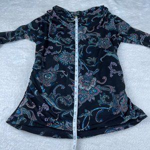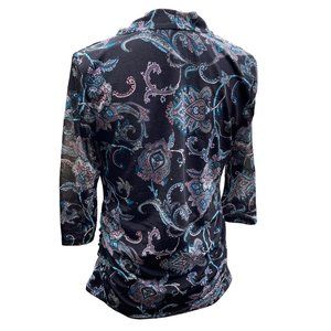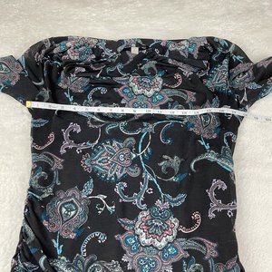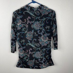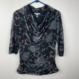 Dana Buchman Drape Front Paisley Print Top Womens S Black 3/4 Cowl Neck Ruched