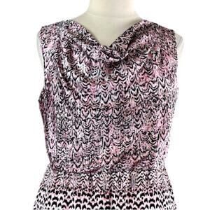 Dana Buchman Dress Drape Neck Sleeveless Blouson Pink Multi Women’s Size XL
