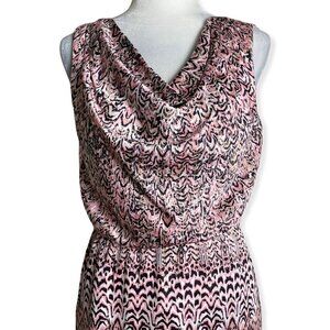 Dana Buchman Dress Pink and Black Print Cowl Neck Elastic Waist Womens Sz S