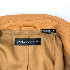 Stunning Leather Jacket With Stitching from Dana Buchman. Fold-over collar, 3 hook closure, fully lined. High-quality soft leather. Color: camel. Excellent condition.