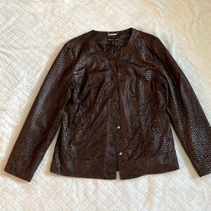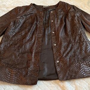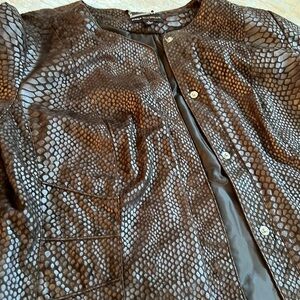 All items will be shipped within 48 hours. sized Large. This is a brown, snakeskin print jacket. Great condition, extremely soft. The sleeves are 25” long. Feel free to message me if you have any additional questions.