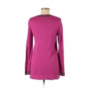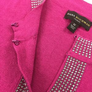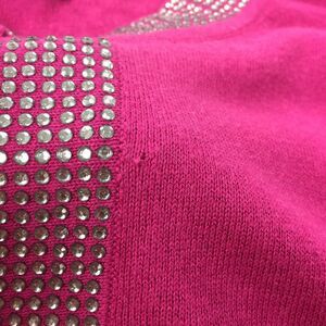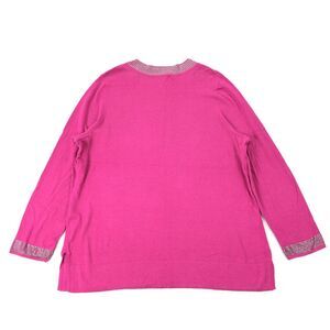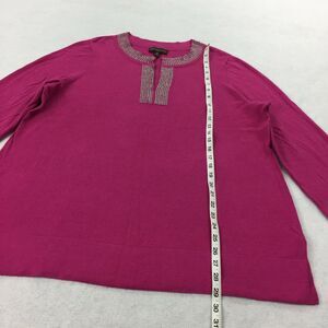 Dana Buchman Knit Sweater Blouse Size 1X Womens Dark Pink Rhinestone Tunic Top