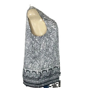 ITEM: Dana Buchman L Black Paisley Print Scoop Neckline Zip Back Detail Sleeveless Blouse