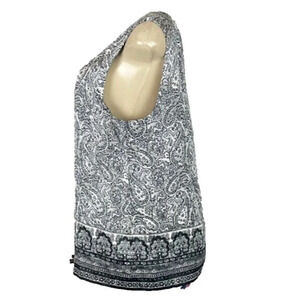 Dana Buchman L Black Paisley Print Scoop Neck Zip Back Detail Sleeveless Blouse