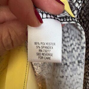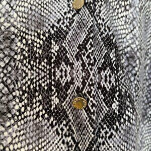 Worn once. This is a very chic top with the hue of colors, and it looks like snakeskin. Gold buttons in front and on cuffs. In addition, one on near each elbow. Very versatile-you can dress it up or down. Size small.