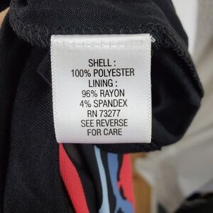 Dana Buchman mixed print top that ties up on the side. Sheer overlay with lining on the body. Shell: 100% Polyester. Lining: 96% Rayon, 4% Spandex. Size medium.