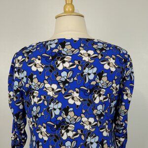 Dana Buchman Multi-Color Floral Pullover Stretchy Top with Ruching Size XL