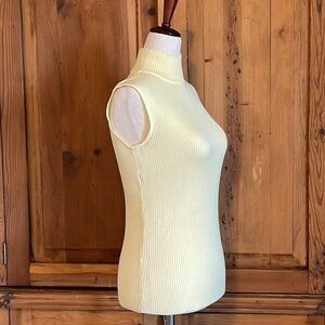Dana Buchman Pale yellow ribbed sleeveless mock neck sweater Sz. S