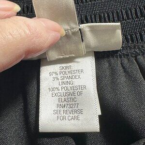 This multicolor abstract print skirt by Dana Buchman offers a professional yet vibrant look. Designed with an elastic waist for comfort and ease, its polyester and spandex blend ensures durability and a flattering fit for professional settings.