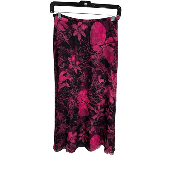 floral maxi skirt, petite floral skirt, Dana Buchman skirt, pink black skirt, long chiffon skirt, summer maxi skirt, size 6 skirt, semi-formal skirt, women's floral skirt, lightweight skirt, petite maxi skirt, elegant skirt, flowy floral