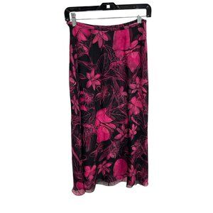 Dana Buchman Petite Womens Floral Pink & Black Maxi Skirt Size 6 Flowy Chic