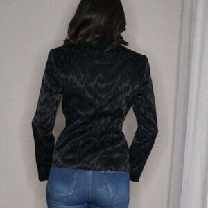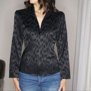 Dana Buchman black blazer featuring a beautiful subtle leopard print, shoulder pads and beautiful silhouette